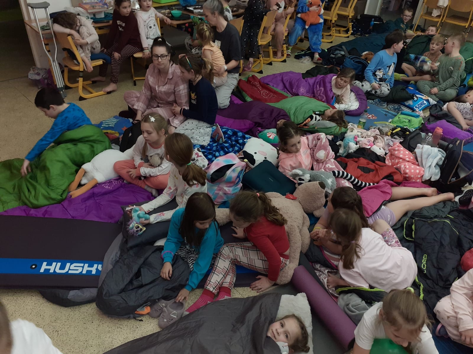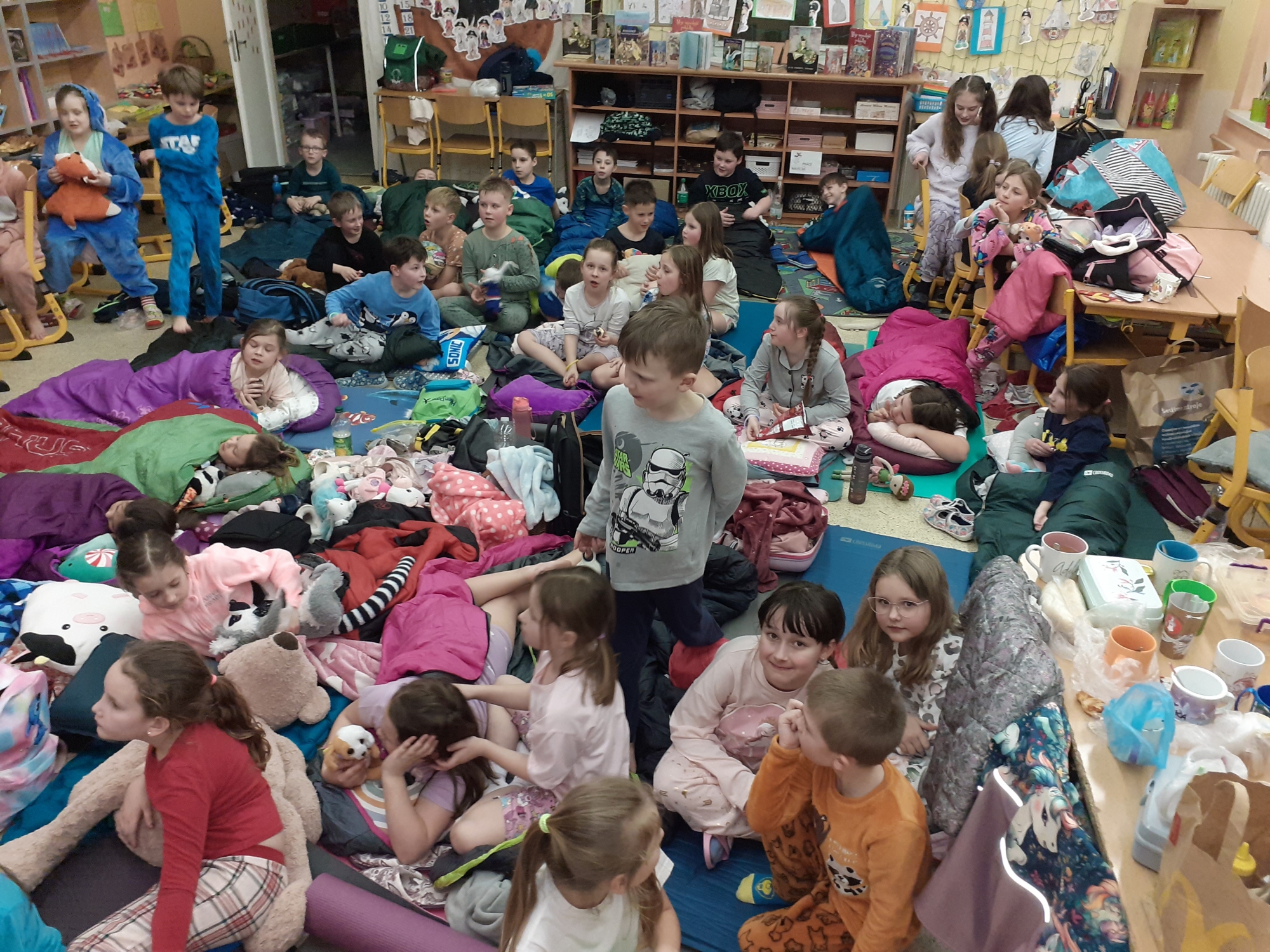 První, třetí a čtvrté třídy ve škole tentokrát nenocovaly, ale celý páteční den všichni společně plnili nejrůznější úkoly a kvízy s tématikou spisovatele H.Ch. Andersena a jeho knih. A jakmile se setmělo, škola ztichla a pobývaly v ní jen druhé třídy. Začala večerní pohádka......