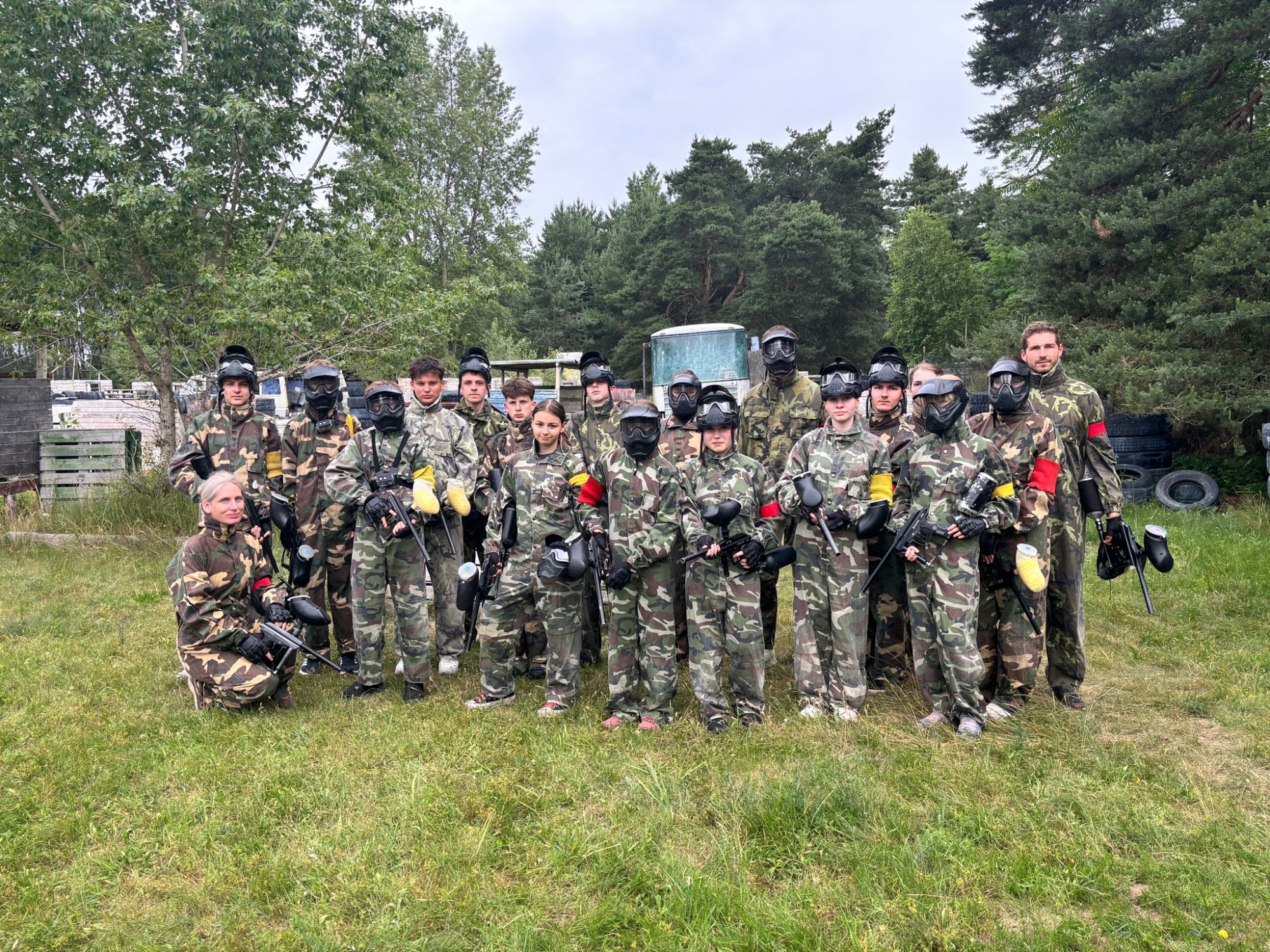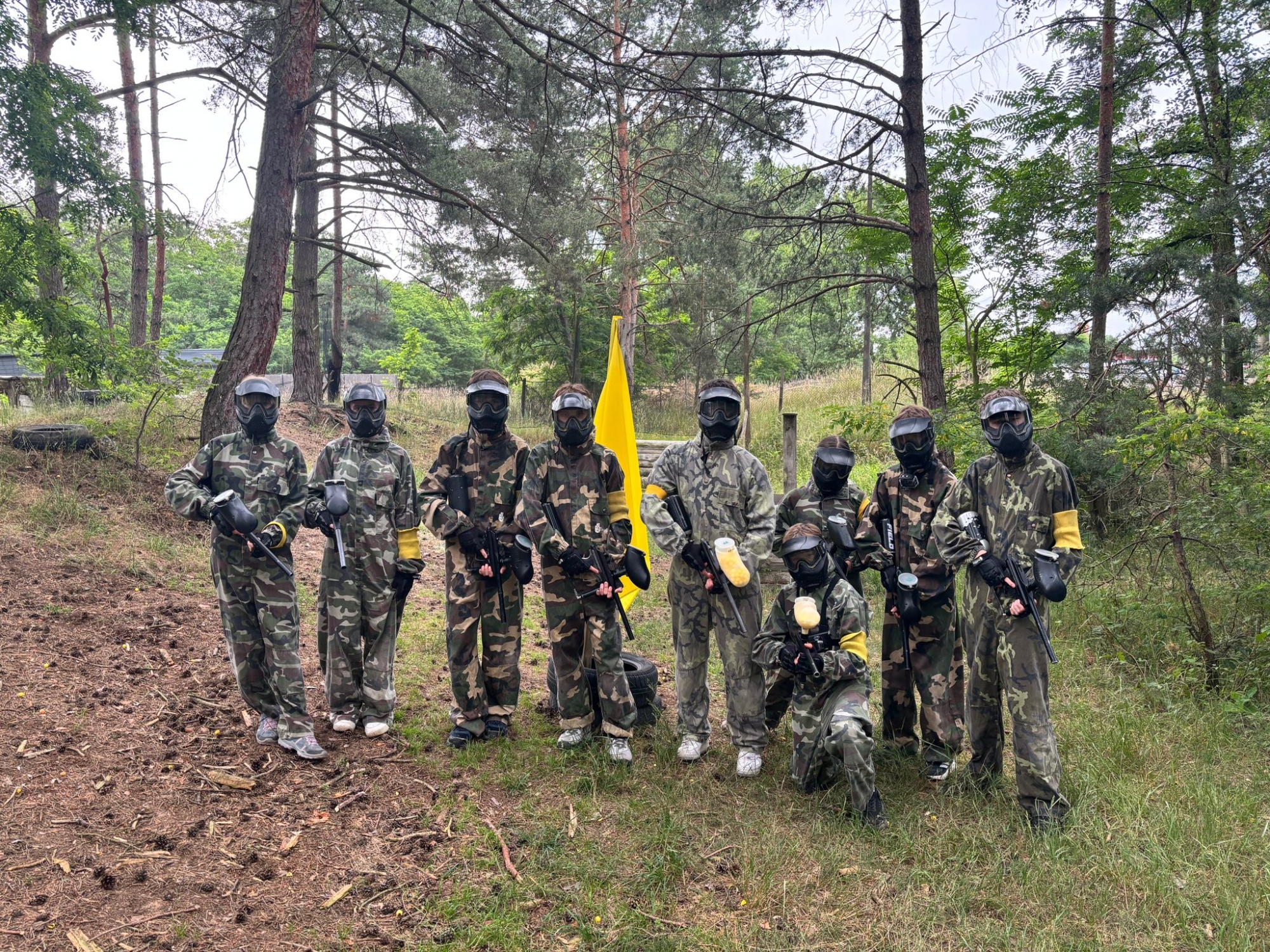 Vyrazili jsme vlakem do Paintballparku v Hodoníně – Pánově a zažili dopoledne plné adrenalinu, zábavy a týmové spolupráce. Už při prvním výstřelu bylo jasné, že tohle nebude žádná procházka růžovým sadem. Masky nasazeny, zásobníky plné a osmáci připraveni – boj mohl začít! Ze křoví se ozývaly taktické pokyny, kuličky plné žluté barvy létaly vzduchem a vyplašená srnka se rychle běžela schovat hlouběji do lesa. Ti, co se nezvládli dobře krýt, si z výletu odnesli i “suvenýry” v podobě modřin. Ty se však brzy zahojí a zbydou jen vzpomínky na školní výlet plný akce.