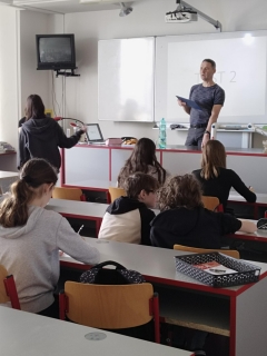 V předvelikonočním týdnu jsme ve škole přivítali zástupce Uherskohradišťské nemocnice a.s. doprovázené dvěma studentkami 3. ročníku čtyřletého maturitního oboru Praktická sestra ze SPHZŠ v Uherském Hradišti. Osmákům byly představeny zdravotnické obory, ve kterých se mohou po ukončení základní školy vzdělávat. Zdravotnické obory patří mezi perspektivní díky své vysoké odbornosti a nabízejí po studiu okamžité zaměstnání. Jedná se o stabilní povolání s prakticky nulovou nezaměstnaností a velkou poptávkou na trhu práce.