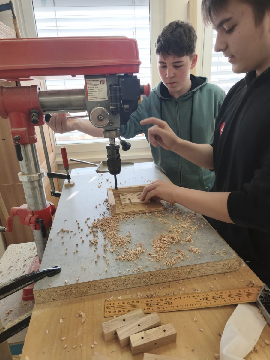 Naši žáci si vyzkoušeli například pájení drátů, ovládání robotické ruky, se kterou obtahovali předtištěný tvar dvojité šipky, nebo programování CNC frézky pomocí počítače. Velký zájem vzbudila také práce se dřevem, kdy žáci opracovávali připravené kousky dřeva, ze kterých si vyrobili praktický stojánek na mobilní telefon. Zájemci si na něj navíc mohli nechat vygravírovat své jméno nebo vlastní logo.