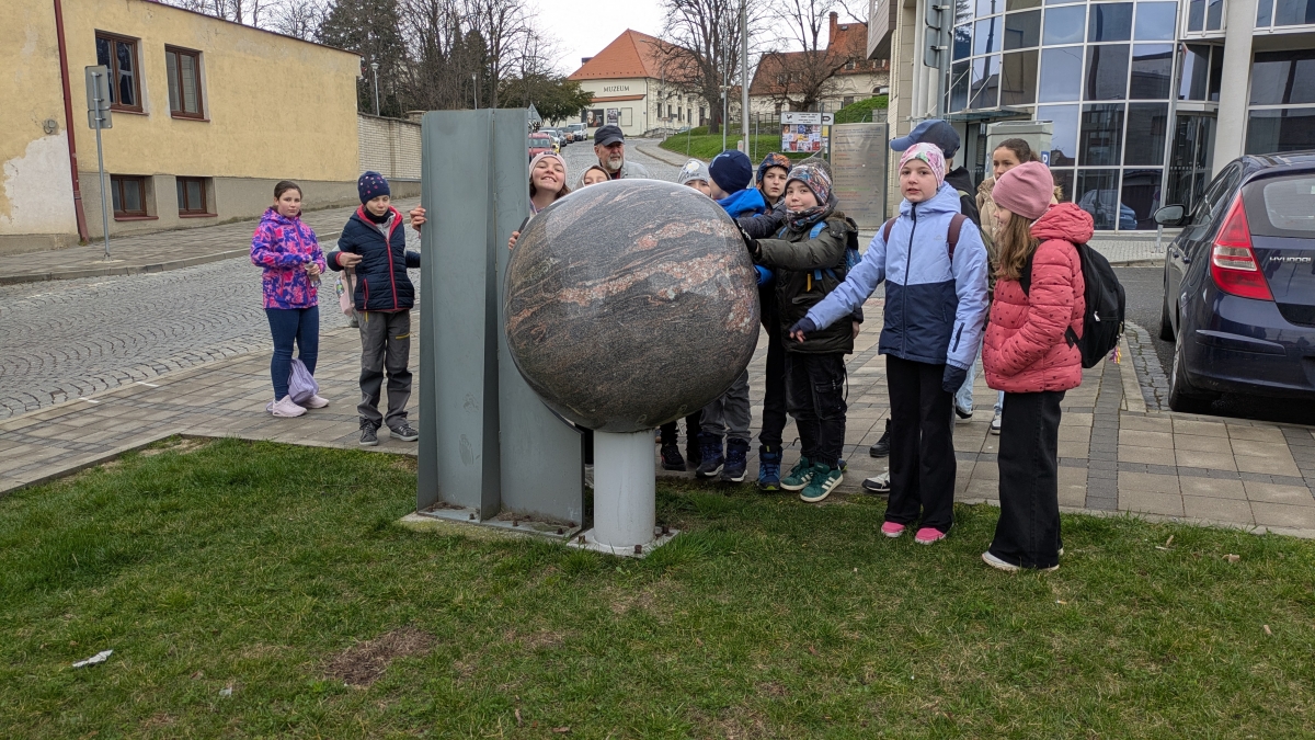 Ráno nám sice moc nepřálo počasí – cestou na vlak pršelo, ale později déšť ustal a výlet mohl pokračovat bez problémů. Na planetární stezce jsme mohli vzdálenosti mezi jednotlivými planetami poměřit svými vlastními kroky. A prohlédnout si planety, které byli vybroušeny z různě barevných kusů mramoru.