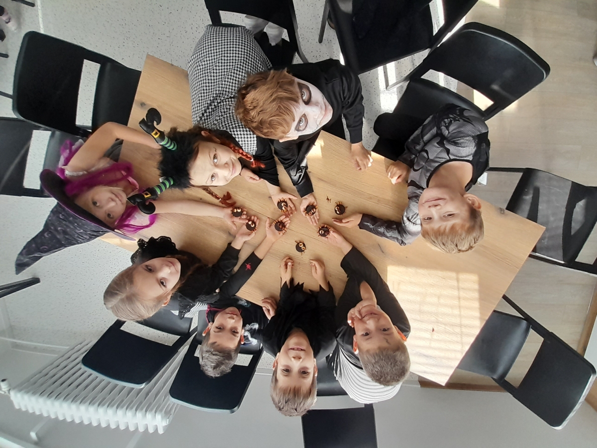 Halloweenské učení na 1. stupni je poučné, zábavné,sportovní, hravé a plné dobrot. Vyřádí se při něm žáci i učitelé. A hlavně nás to společně baví.