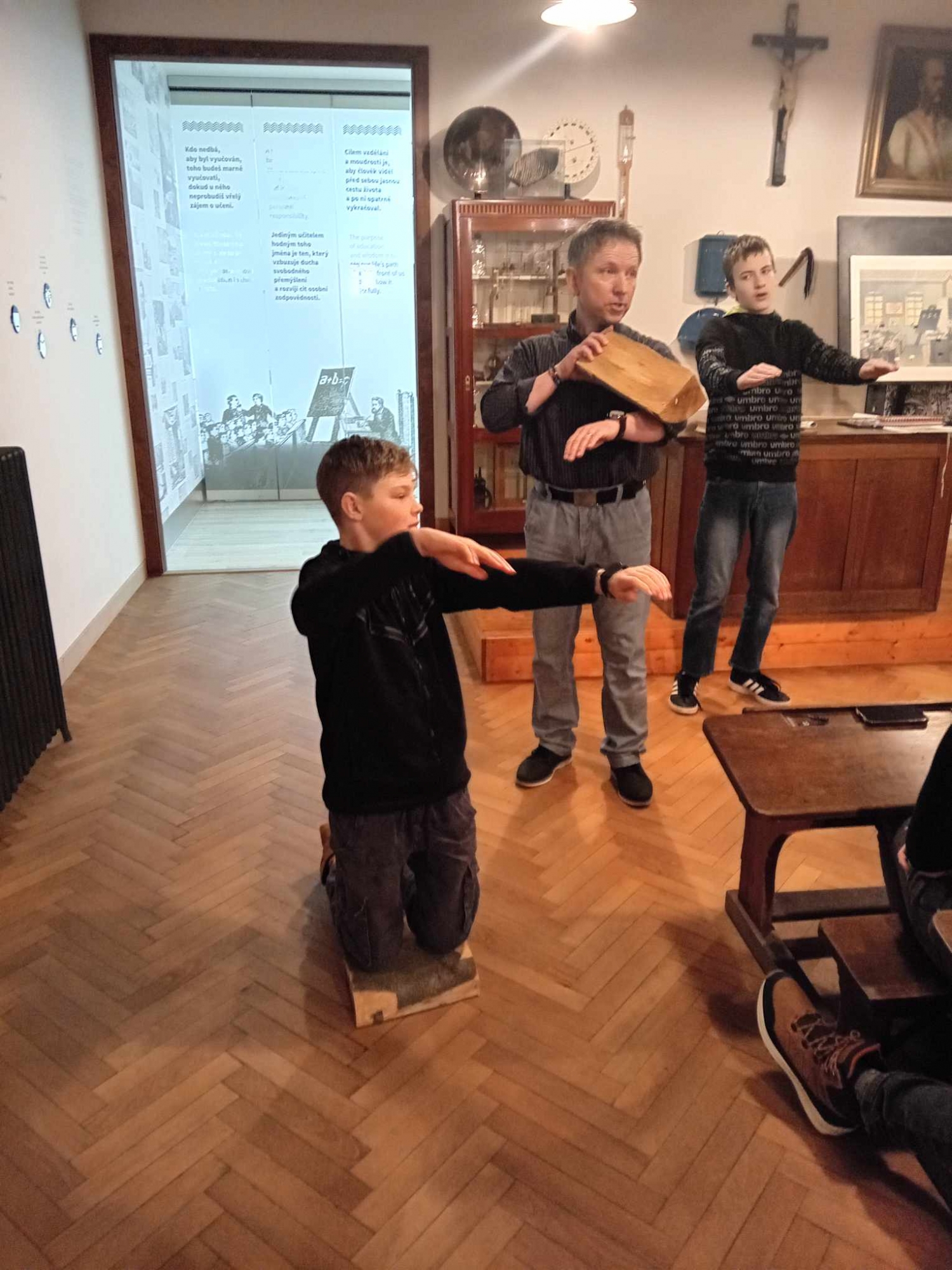 Poznáte, od které významné osobnosti pochází tyto citáty? Ano, správně - od Jana Amose Komenského. Středeční dopoledne si žáci naší školy zpříjemnili návštěvou muzea tohoto velikána v Uherském Brodě. V první části nazvané „Na jevišti světa", nás průvodkyně seznámila s dobou a životem Jana Amose Komenského. Dále jsme procházeli tmavým labyrintem, v němž se nacházely bílé kóje a u nich popisky k jednotlivým etapám jeho života. Součástí expozice byly i interaktivní prvky pro děti i dospělé. V druhé části jsme zhlédli audiovizuální projekci, která nám přiblížila slavné dílo Labyrint světa a ráj srdce. V další etapě této návštěvy si děti vyzkoušely výuku ve „staré škole". Byly usazeny do třídy, která se skládala z dobových školních lavic, kabinetní skříně a katedry. Tamější pan učitel formou hry názorně předvedl, jak probíhaly školní hodiny v 17.století. Kromě výuky také dětem přiblížil fyzické tresty, které nebyly v té době ojedinělé. Někteří dobrovolníci si tak vyzkoušeli, jaké to bylo klečet na polínku či mít předpažené ruce celou hodinu. Děti si z tohoto dopoledne odnesly nevšední zážitek.