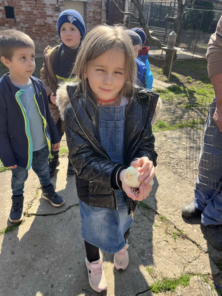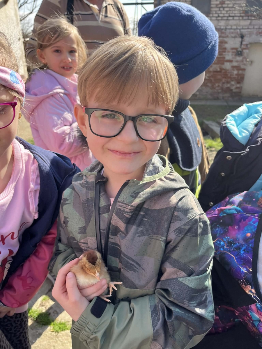 Dnešní krásný den jsme si užili naplno při procházce s dětmi, která se proměnila v milé a nezapomenutelné setkání. Měli jsme možnost podívat se na nová kuřátka, pohladit si králíky a s úsměvem pozorovat i trochu divočejší slepice a kohouta. Pro děti to byl zážitek, který jen tak nezažijí – plný radosti, zvědavosti a nových objevů.