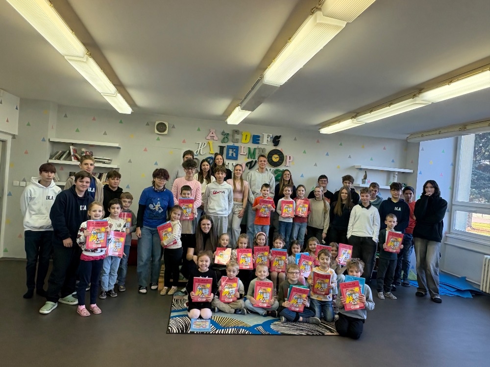 Naši prvňáčci zvládli první velkou zkoušku čtení. Jejich parťáci z 9. tříd je vyzkoušeli a slavnostně jim předali nový Slabikář. Nechyběla ani písmenková víla, která nad každým Slabikářem pronesla kouzelné zaklínadlo: ,,Uč se z něj a měj ho rád, ať je to tvůj kamarád!" To už jistě našim prvňáčkům půjde učení úplně samo.