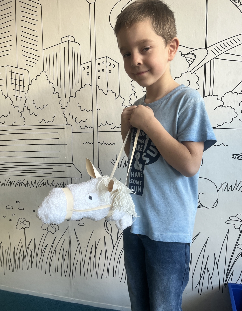 V hlavní roli byl tentokrát sv. Martin. Abychom se o něm něco dozvěděli, spojili jsme síly s žáky 3.B a prošli společně stezkou s otázkama, na konci které nás čekala tajenka se sladkou odměnou. A protože Martin přijíždí na bílém koni, jednoho jsme si také vyrobili :).