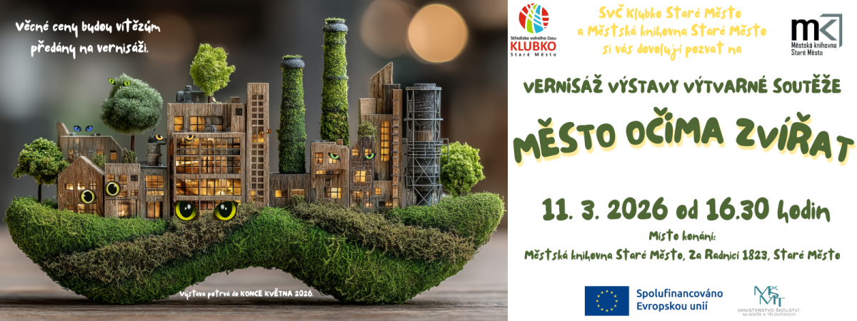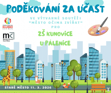 Naši žáci z 1. stupně se zapojili do výtvarné soutěže na téma „Město očima zvířat“, kterou pořádalo Klubko a knihovna ve Starém Městě. Děti se pustily do tvoření s velkým nadšením a fantazií. Vznikly nejen krásné obrázky, ale také zajímavá prostorová díla, ve kterých si žáci představovali, jak by asi město vypadalo z pohledu různých zvířat.