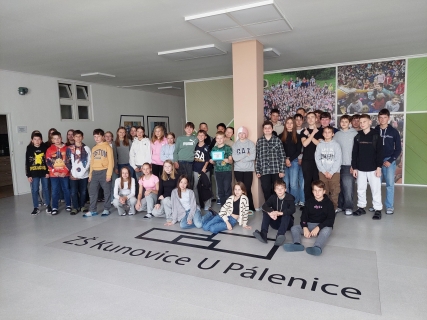 Poděkování patří také dalším našim žákům: Zuzaně Halodové (7.ročník), Emě Zlomkové a Kubovi Hyrákovi (8.ročník) a Dominikovi Škráškovi (9.ročník), kteří se okresního kola také zúčastnili.  Velmi oceňujeme jejich snahu, přípravu a odvahu pustit se do náročné soutěže.
