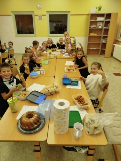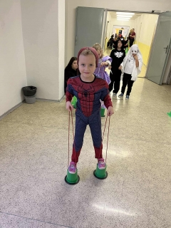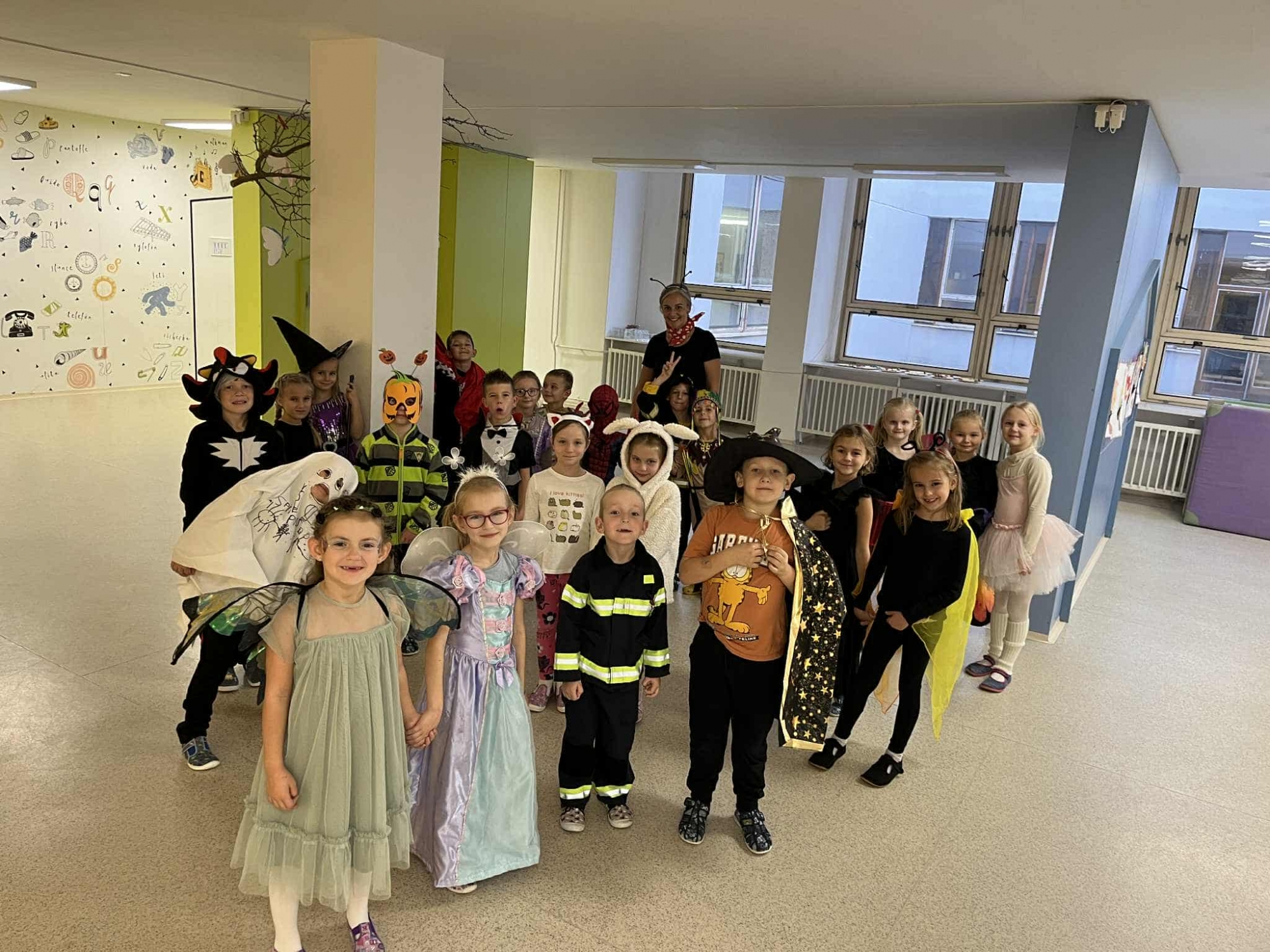Podzim přináší nejen barevnou přírodu, ale i chuť zažít něco výjimečného. A právě takové dobrodružství si užili naši malí prvňáčci z 1.B během podzimního nocování ve škole. S batohem, spacákem a velkým nadšením se vydali objevovat školu i po setmění. Čekala je spousta zábavy - sportovní stanoviště, tvoření podzimních dekorací a také,,kostýmový brouččí bál" plný tance, her a smíchu. Nechyběly ani pohádky na dobrou noc a oblíbené ,,spacákové kino". Vyvrcholením večera byla světélková stezka odvahy, která vedla temnými zákoutími školy. Každý malý dobrodruh ji prošel sám a na jejím konci objevil svítící poklad.,,To byl ten nejlepší den v životě!" volali nadšeně někteří prvňáčci. A my jim přejeme, ať krásných zážitků se svými kamarády zažijí ve škole co nejvíce.