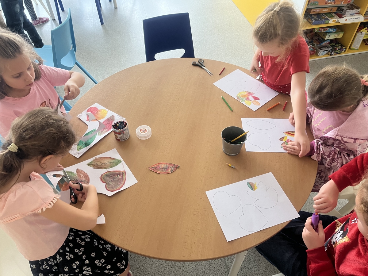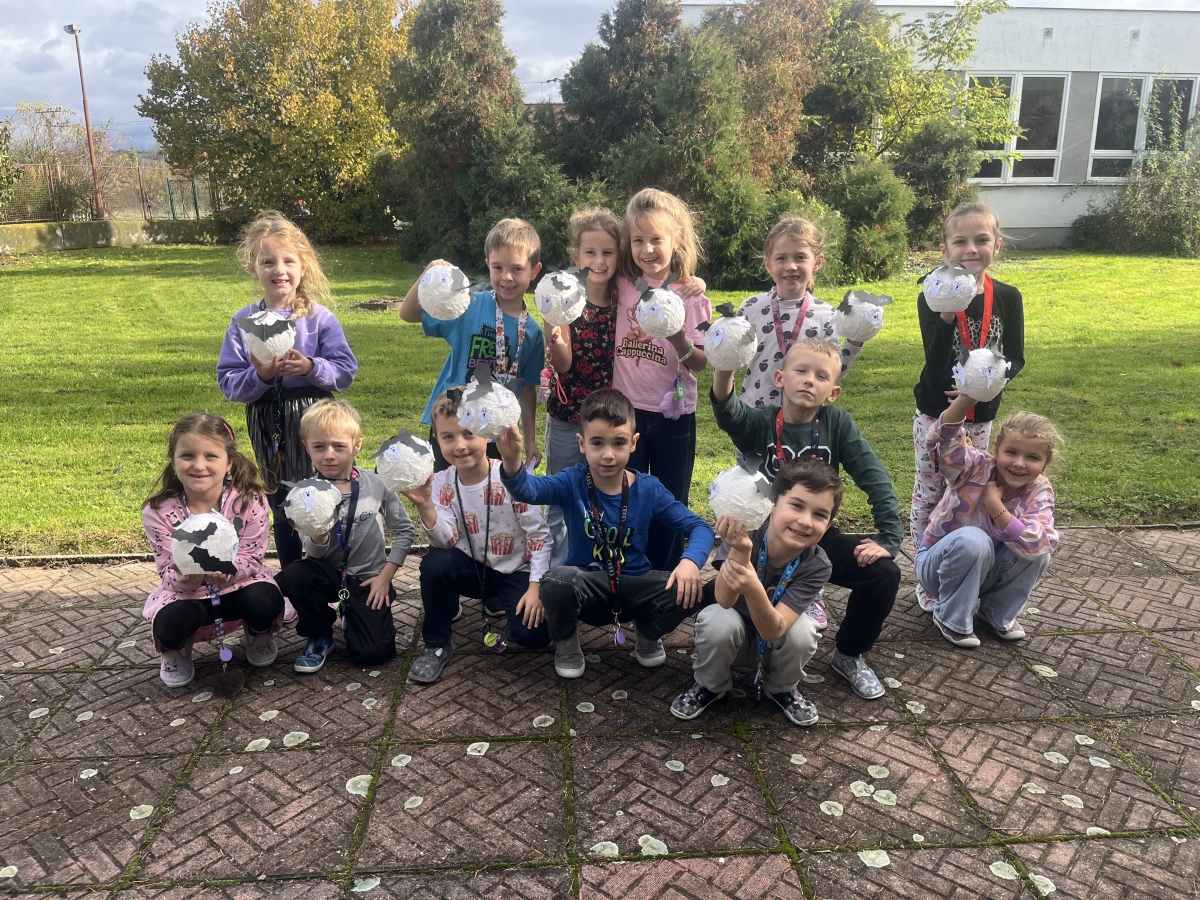 V měsíci říjnu měly děti ze žluté družiny spoustu práce a stálo to za to ! :). Pekly malé planety Země, vyráběly vrány z látky, ježky z papíru a svačinových sáčků, společný podzimní strom a na závěr halloweenské svítidlo, které vzniklo pomocí techniky kašírování.