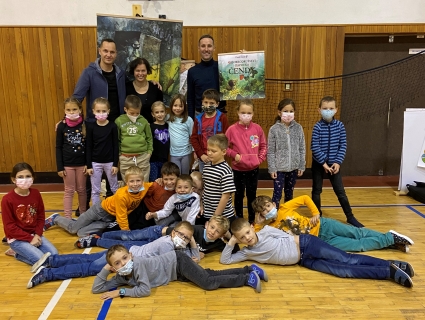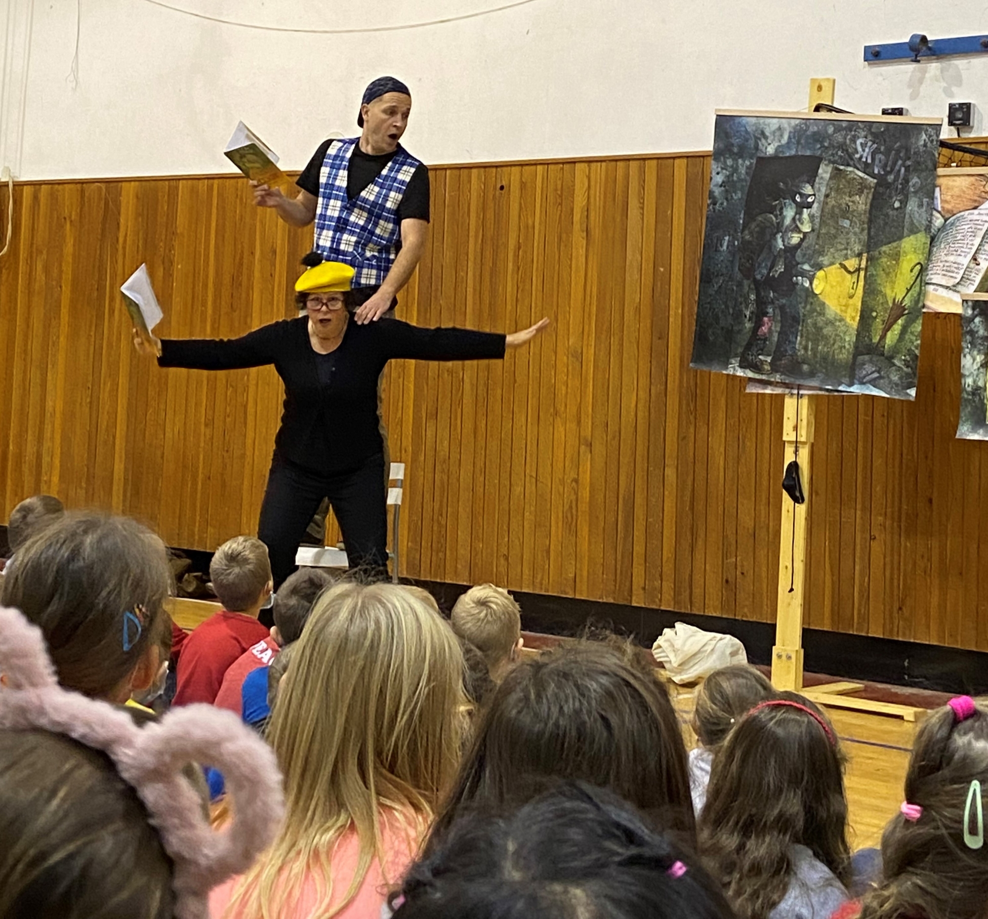 Dobrodružstní pavouka Čendy v podání herecké trojice I. Vackové, D. Vackeho a J. Hejcmana rozproudila tělocvičnu plnou diváků z 1. - 4. tříd. Do scénického čtení dupali, tleskali a někdy se i za břicho popadali. Skvělý výkon jsme na závěr ocenili bouřlivým potleskem. Už se nyní těšíme na duben na nové vystoupení s názvem Čarodějnice v podání této skvělé trojice herců.