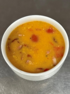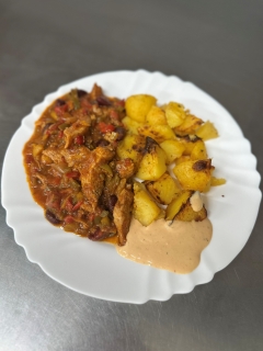 Dnes jsme se s naší školní jídelnou vydali do Mexika. Nejprve nás čekala sopa frijoles charros (mexická hrachová polévka s klobásou) a poté nelehký výběr mezi kuřecím fajitas s fazolemi a pečenými brambory a enchiladas (tortillou plněnou masovou směsí zapečenou s rajčatovou omáčkou a sýrem). Oboje bylo naprosto výborné!
