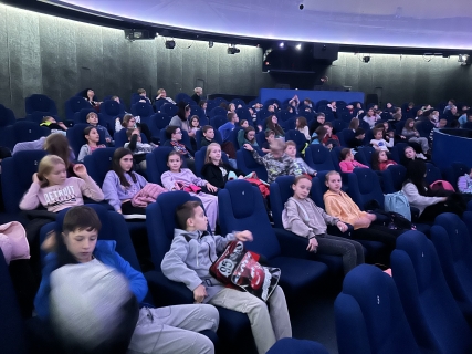 Nejprve jsme si všichni společně povídali o Slunci, Sluneční soustavě a o hvězdách a souhvězdích. Vše jsme si mohli prohlédnout na umělé obloze v prostorách digitária. Poté už nás čekal náš první kosmický let do vesmíru. První zastávkou byl Měsíc, jediné vesmírné těleso, na kterém lidé dosud přistáli. Dále jsme se pohybovali na Marsu, který se nejvíce podobá naší planetě Zemi a vzápětí následovaly Jupiter, Saturn, Uran i Neptun. Navštívili jsme dokonce i trpasličí planetu Pluto. Zjistili jsme, že se zde nachází podivuhodný svět s tmavými krátery a zasněženými ledovci….