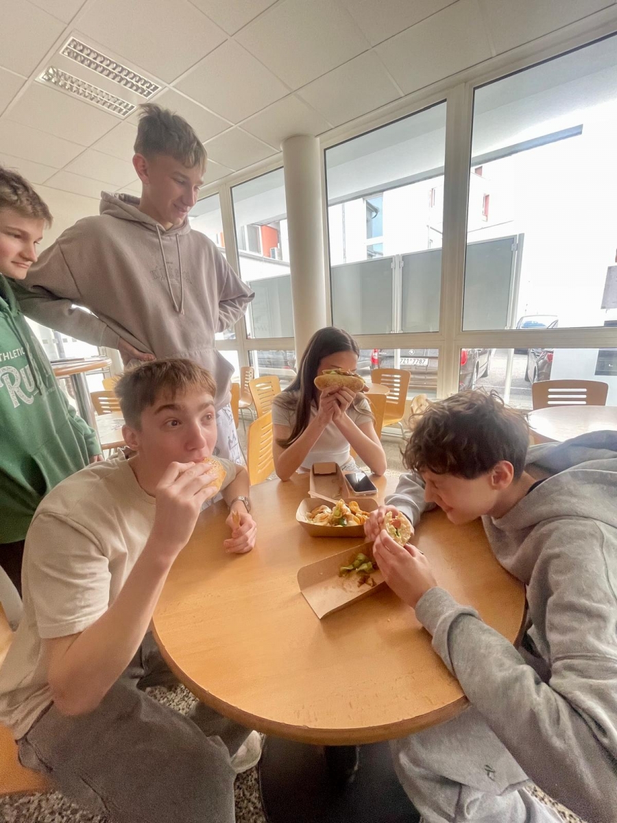 Součástí návštěvy byl také nevšední gastronomický zážitek. Ve škole totiž probíhal školní food festival America Day, který připravili studenti 2. ročníku oboru Hotelnictví a cestovní ruch. Naši žáci tak měli možnost ochutnat pravé americké hotdogy a osvěžující nápoje.