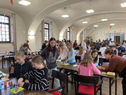Žáci od 3. do 7. ročníku se dnes vydali do sálu Panského dvora v Kunovicích, kde probíhal festival deskových a logických her IQ Play. Děti si mohly vyzkoušet desítky her, hlavolamů a stavebnic, které prověřily jejich trpělivost, postřeh i strategické myšlení.