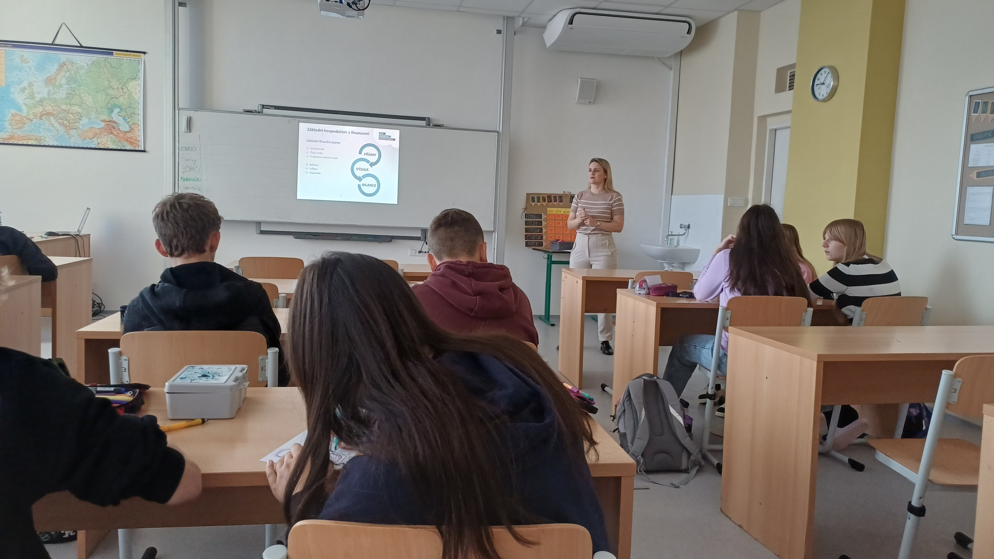 Dnes si naši deváťáci díky školení finanční gramotnosti ujasnili základní finanční pojmy a dozvěděli se např., jaký je rozdíl mezi hrubou a čistou mzdou, či co je to inflace. Tvořili si také svůj finanční plán, který zahrnoval např. vlastní bydlení, finanční podporu pro děti, až budou mít jednou rodinu, a také jak se v budoucnu dobře zabezpečit na stáří.