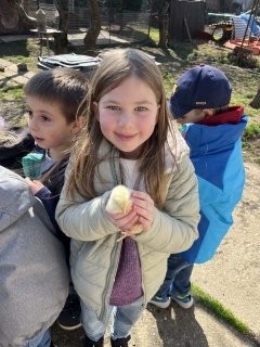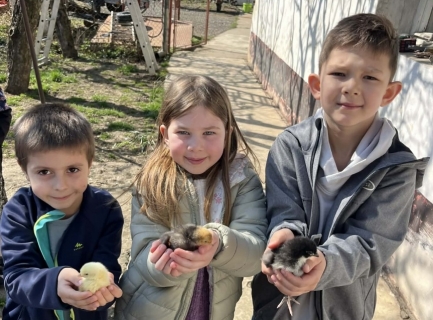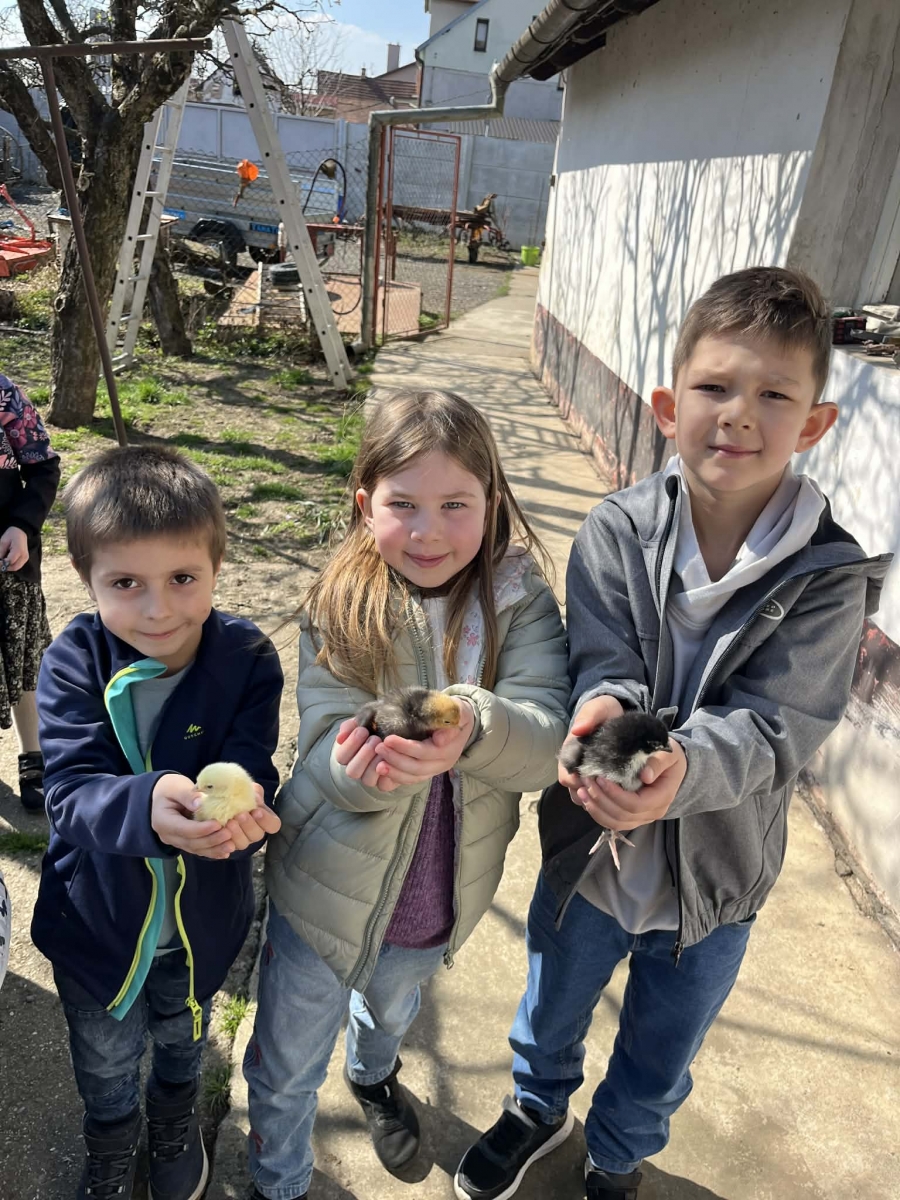 Dnešní krásný den jsme si užili naplno při procházce s dětmi, která se proměnila v milé a nezapomenutelné setkání. Měli jsme možnost podívat se na nová kuřátka, pohladit si králíky a s úsměvem pozorovat i trochu divočejší slepice a kohouta. Pro děti to byl zážitek, který jen tak nezažijí – plný radosti, zvědavosti a nových objevů.