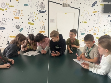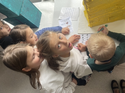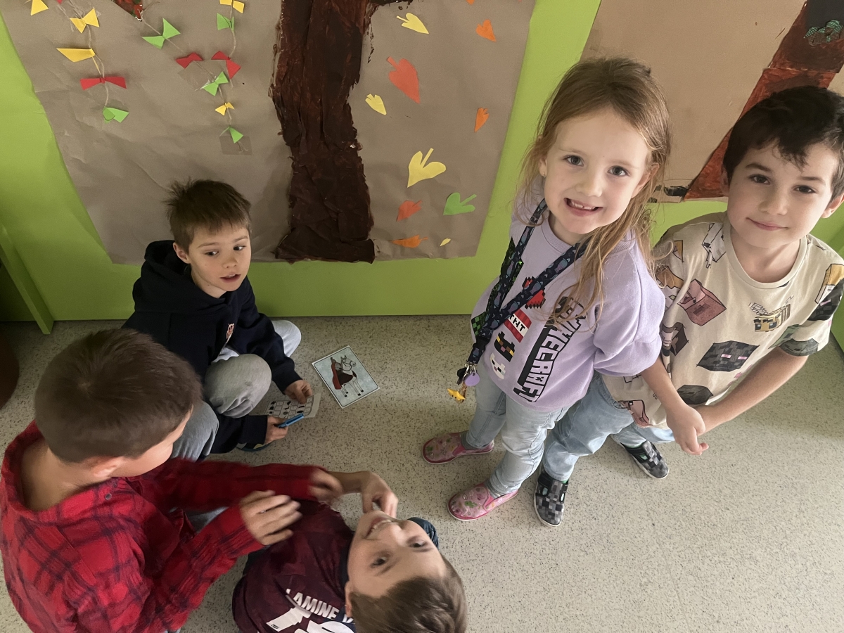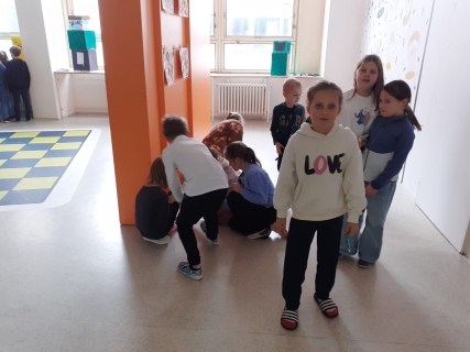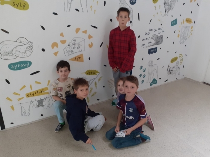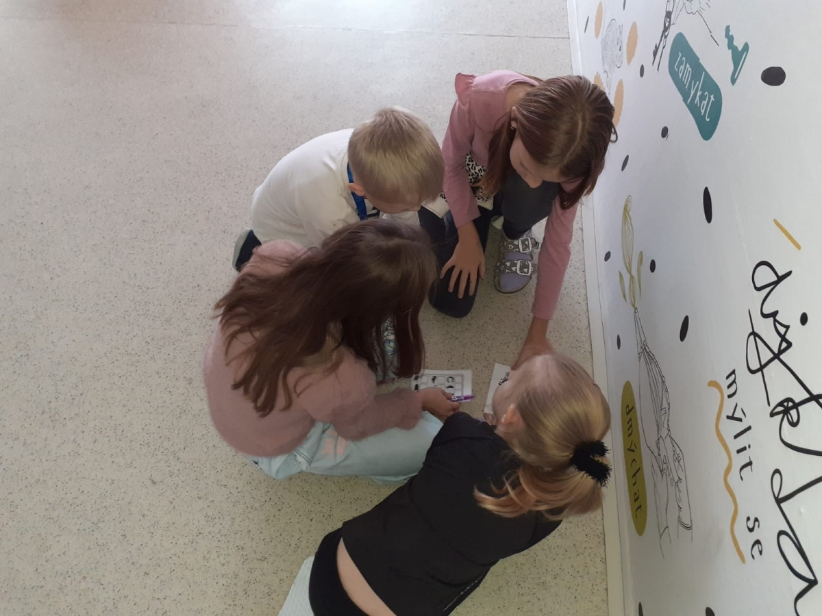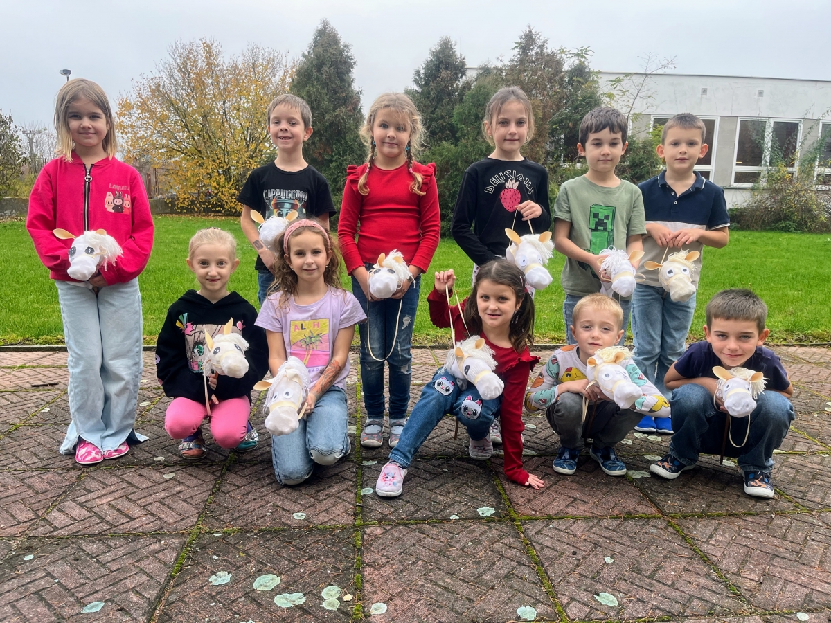 V hlavní roli byl tentokrát sv. Martin. Abychom se o něm něco dozvěděli, spojili jsme síly s žáky 3.B a prošli společně stezkou s otázkama, na konci které nás čekala tajenka se sladkou odměnou. A protože Martin přijíždí na bílém koni, jednoho jsme si také vyrobili :).