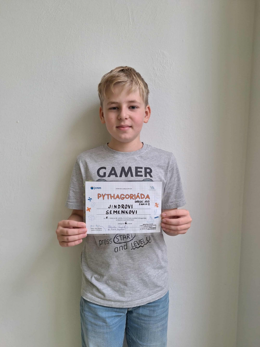 Máme velkou radost z úspěchu Jindry Semenky (5.B), který se letos pustil do náročné Pythagoriády, určené pro žáky 6. tříd.