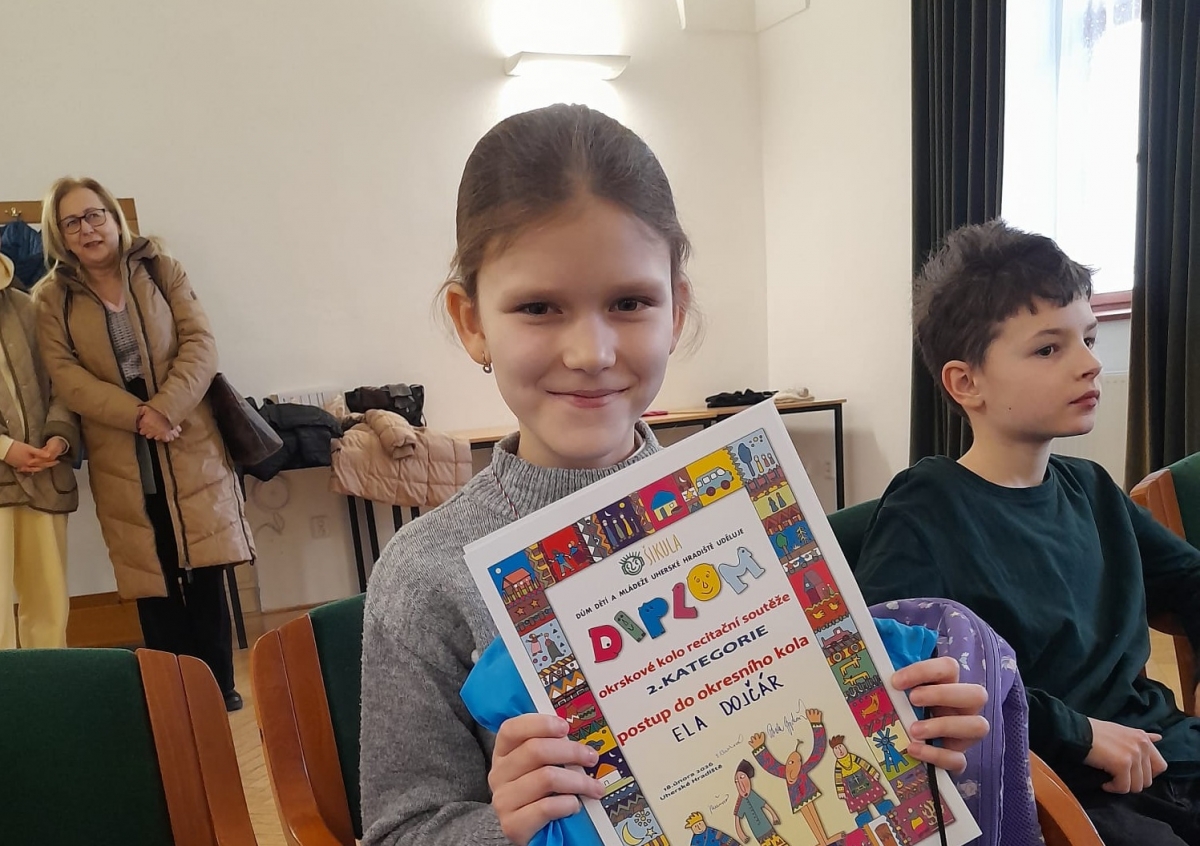 Velká gratulace patří Ele Dojčár, která si svým výkonem vybojovala postup do okresního kola v Uherském Brodě!
