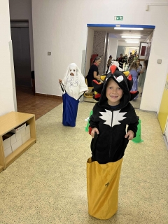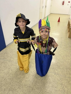 Podzim přináší nejen barevnou přírodu, ale i chuť zažít něco výjimečného. A právě takové dobrodružství si užili naši malí prvňáčci z 1.B během podzimního nocování ve škole. S batohem, spacákem a velkým nadšením se vydali objevovat školu i po setmění. Čekala je spousta zábavy - sportovní stanoviště, tvoření podzimních dekorací a také,,kostýmový brouččí bál" plný tance, her a smíchu. Nechyběly ani pohádky na dobrou noc a oblíbené ,,spacákové kino". Vyvrcholením večera byla světélková stezka odvahy, která vedla temnými zákoutími školy. Každý malý dobrodruh ji prošel sám a na jejím konci objevil svítící poklad.,,To byl ten nejlepší den v životě!" volali nadšeně někteří prvňáčci. A my jim přejeme, ať krásných zážitků se svými kamarády zažijí ve škole co nejvíce.