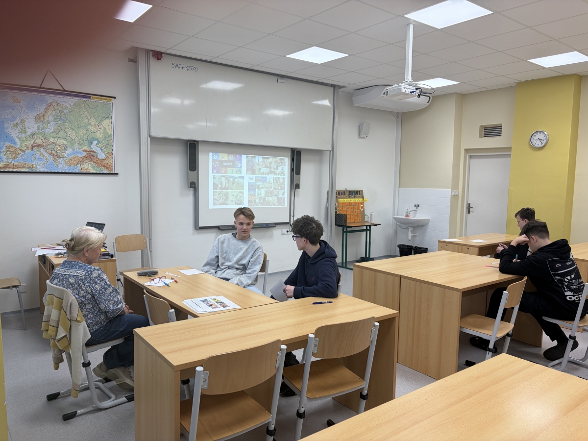 Ve středu na půdě naší školy poměřovali své aktuální schopnosti a dovednosti komunikovat v cizím jazyce žáci osmých a devátých tříd. Během poslechové části na jazykové úrovni B1 bylo třeba v socrative správně zodpovědět co nejvíce z deseti otázek na téma jak si efektivně zorganizovat svůj cenný čas. Poté, po krátkém představení se, pokračovaly páry a jedna trojice ve společné diskuzi na jedno z devíti vybraných témat. Hovořili jsme nejen o svých volnočasových aktivitách a jídle, ale také jsme cestovali, poznávali Britské ostrovy a Českou republiku.