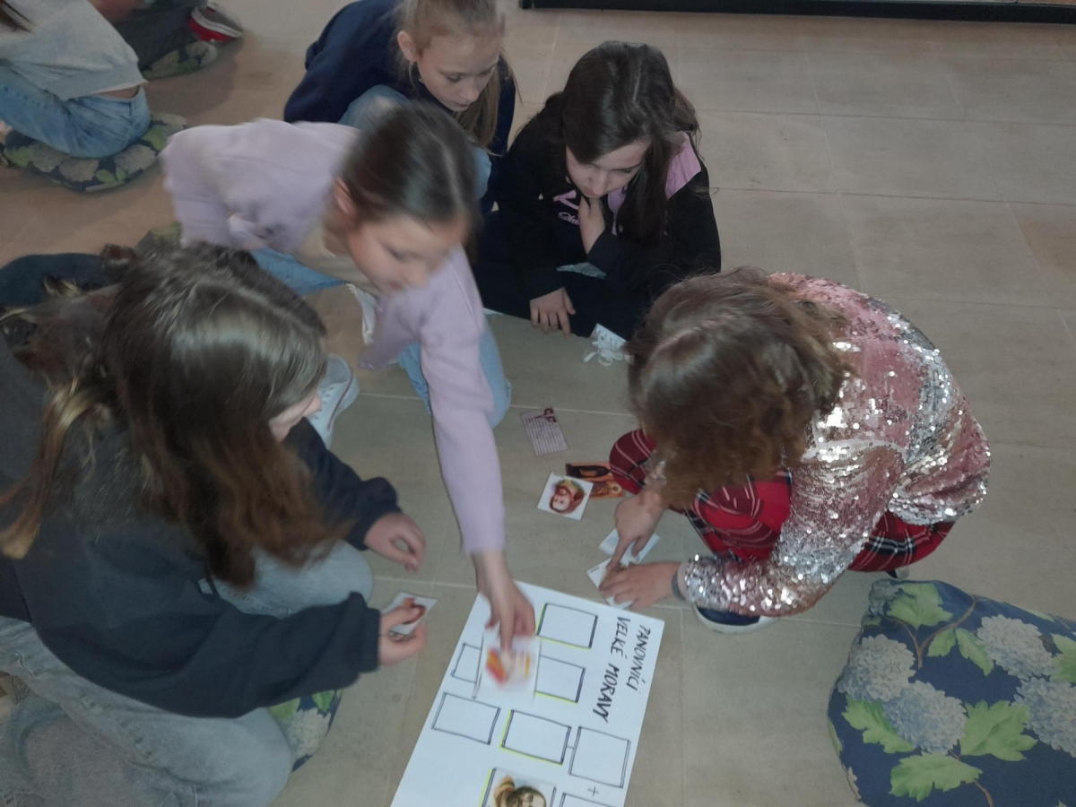Součástí návštěvy byly i interaktivní aktivity – žáci si vyzkoušeli napsat své jméno hlaholicí, uspořádali velkomoravská knížata podle časové posloupnosti a na závěr si mohli zakoupit drobné suvenýry. Exkurze byla nejen poučná, ale i zábavná a všichni si z ní odnesli mnoho nových poznatků i zážitků.