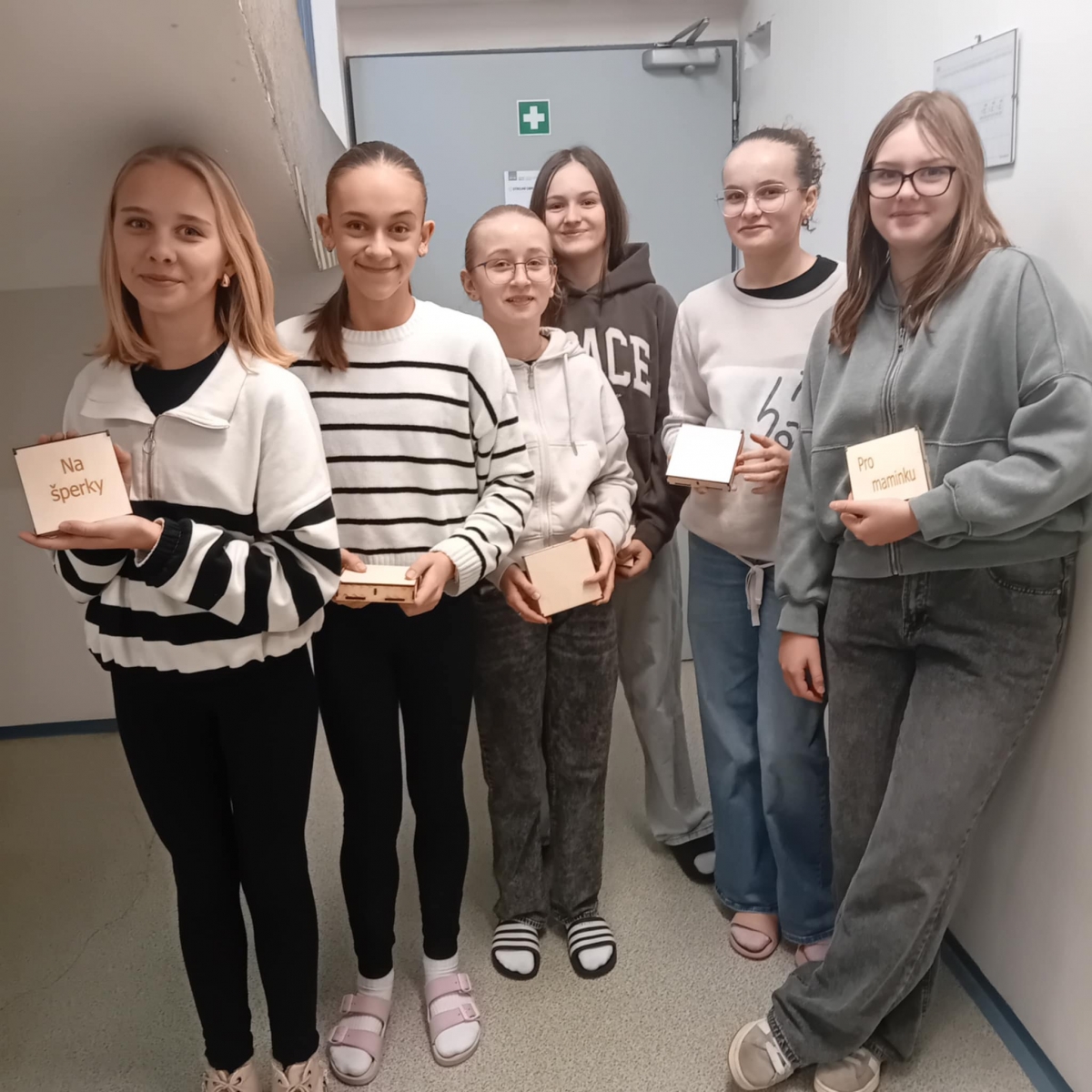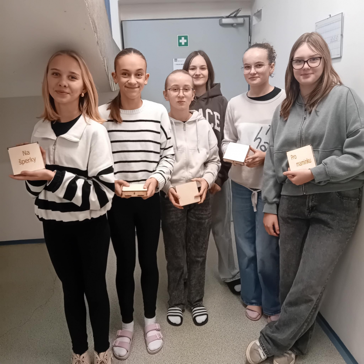 • Děvčata se zaměřila na jemnější práci a vytvořila si dekorativní krabičku, kterou mohou doma používat jako šperkovnici.